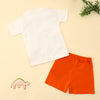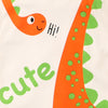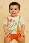 This adorable Kinder’s Crew “Cute Dino” set is here to make your little one roar with joy! The soft white tee features a friendly orange dinosaur with green spikes, waving “Hi!” and spreading smiles. Paired with bright, comfy orange shorts, it’s the perfect outfit for playtime, nap time, or picture time.